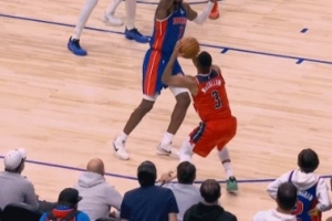 哎我球呢?里萨谢突破欲出手 哈登精准下手“帽”出界外