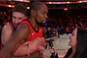 GIF-杜兰特接受采访时 申京跑过来拥抱