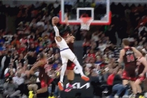 冲击力十足!约基奇接球顺势转身过掉防守 双手暴力虐筐